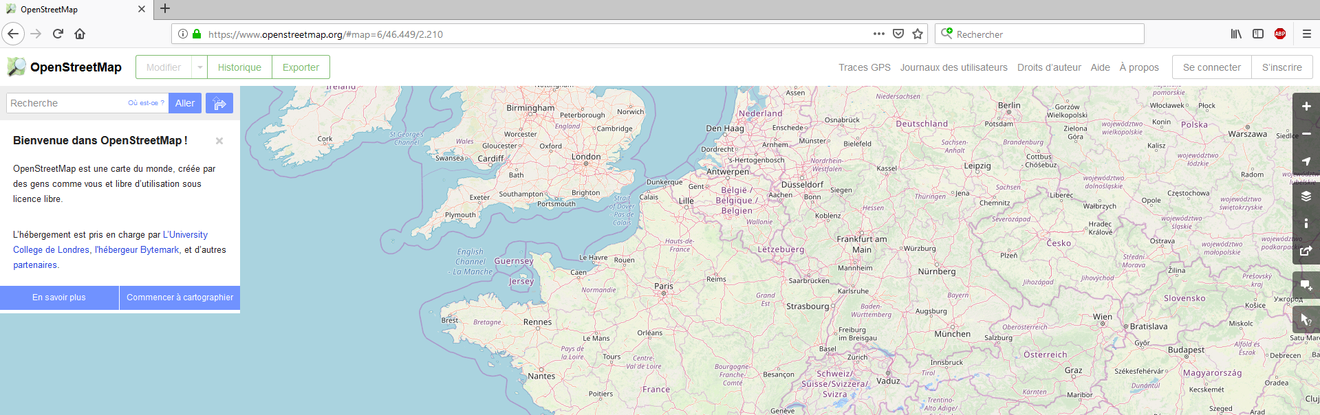 Vous allez d'abord utiliser un navigateur sur votre PC pour afficher une carte avec open street maps : https://www.openstreetmap.org